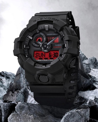 Предлагаем купить наручные часы Casio GA-700BBR-1A в г. Кемерово. Это мужские часы из коллекции G-Shock. Водозащита до 200 метров позволит плавать, нырять и погружаться под воду с аквалангом. Надежное минеральное стекло защищает часы от царапин и долго сохраняет первоначальный внешний вид. Минеральное стекло более устойчиво к появлению небольших царапин и потертостей, хорошо может выдержать небольшие удары и падения. Даже если поцарапаете стекло, его легко можно отполировать в часовой мастерской и вернуть им прежний вид. Кварцевые часы всегда точнее механических. В среднем, погрешность хода составляет 20 секунд в месяц. Кварцевые часы не нужно заводить, только менять батарейку раз в несколько лет.