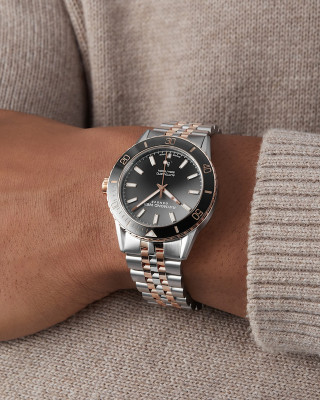 Нержавеющая сталь с PVD-покрытием из розового золота и черным керамическим безелеНержавеющая сталь с PVD-покрытием из розового золота и черным керамическим безеле